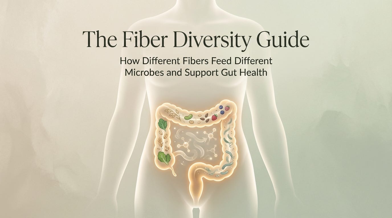Different fibers feed different microbial species. Each type produces distinct fermentation patterns and metabolic outputs.