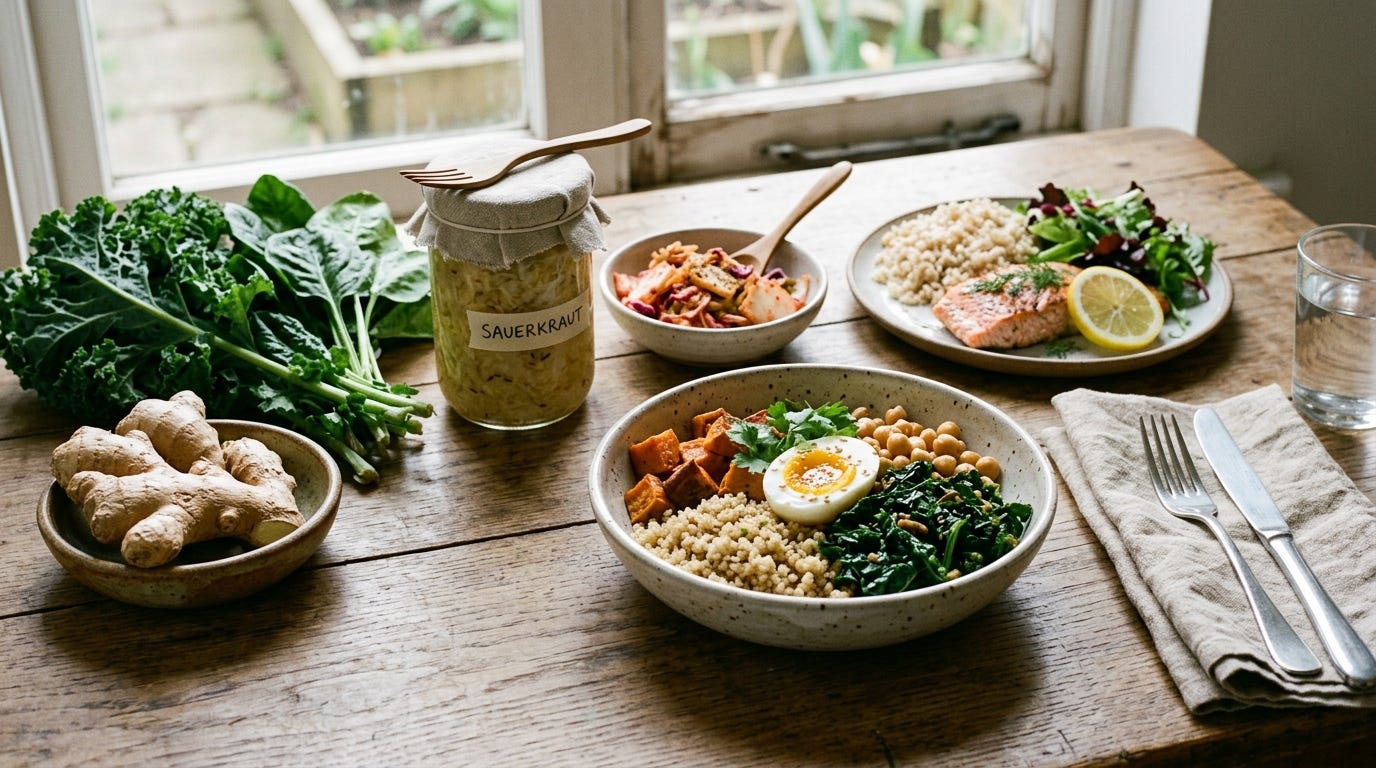 Certain foods can also support digestion more directly. Bitter foods can help stimulate digestive processes, ginger can support motility, and fermented foods can help maintain a more balanced gut environment.