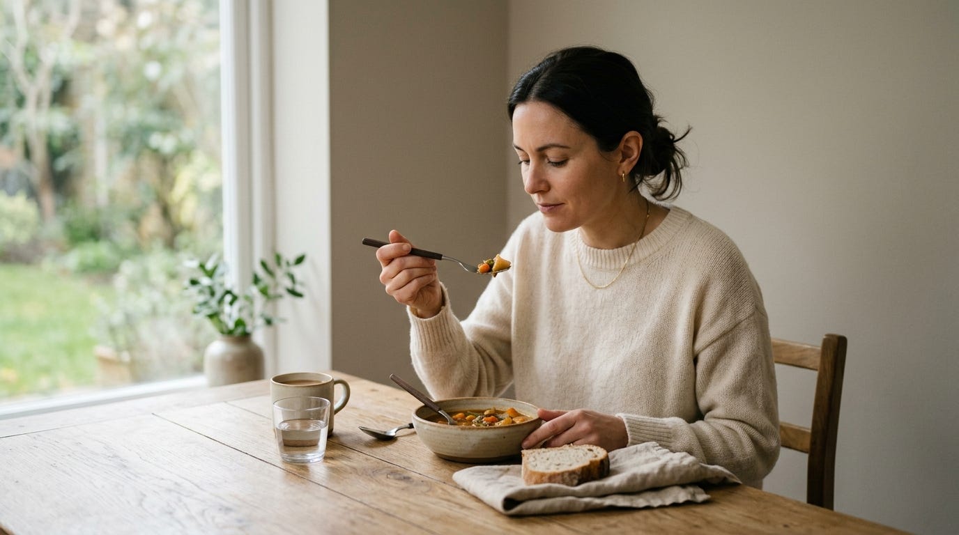 Start by paying attention to how you eat, not just what you eat. Eating in a more relaxed state allows your body to shift into digestion more effectively, which improves how food is broken down and absorbed.