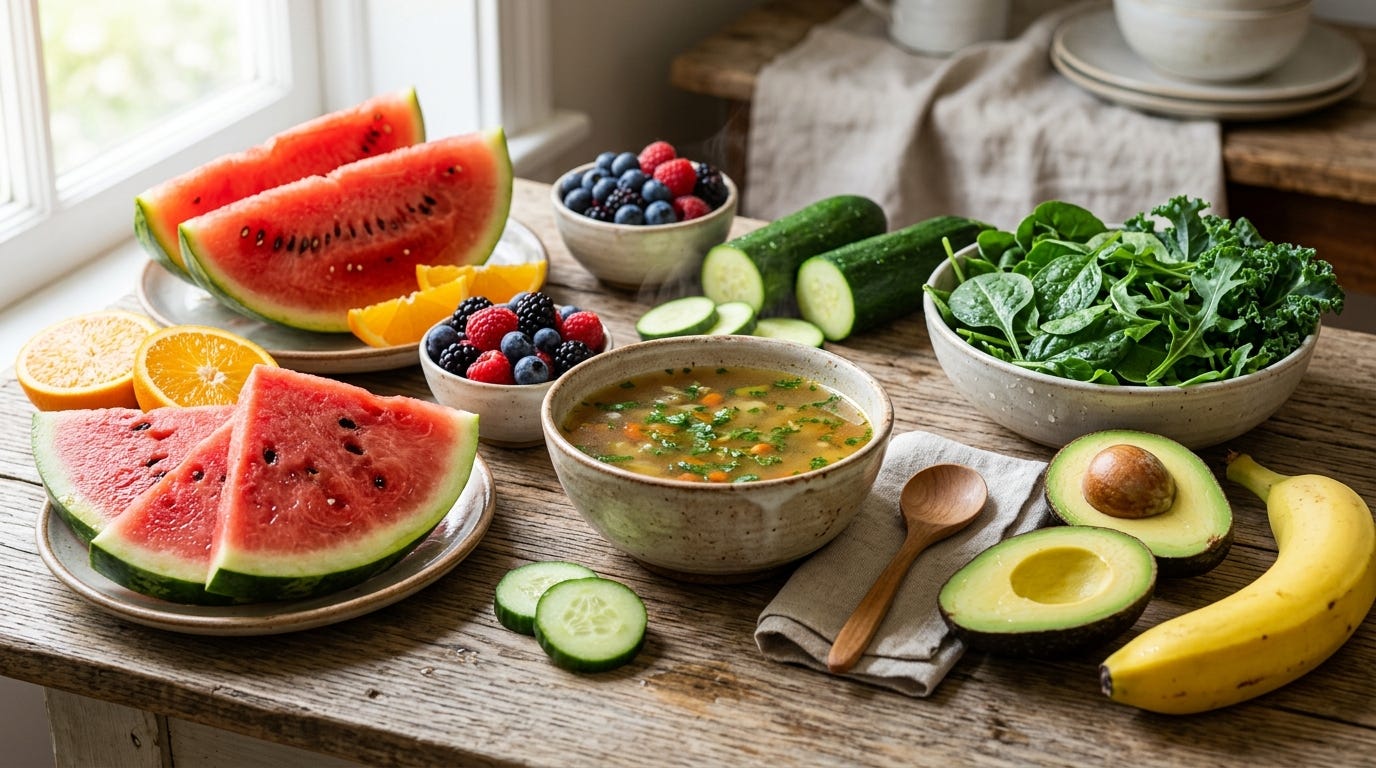 These foods tend to hydrate more effectively because they come with structure. Instead of just adding water, they provide the minerals your body needs to actually use that water.